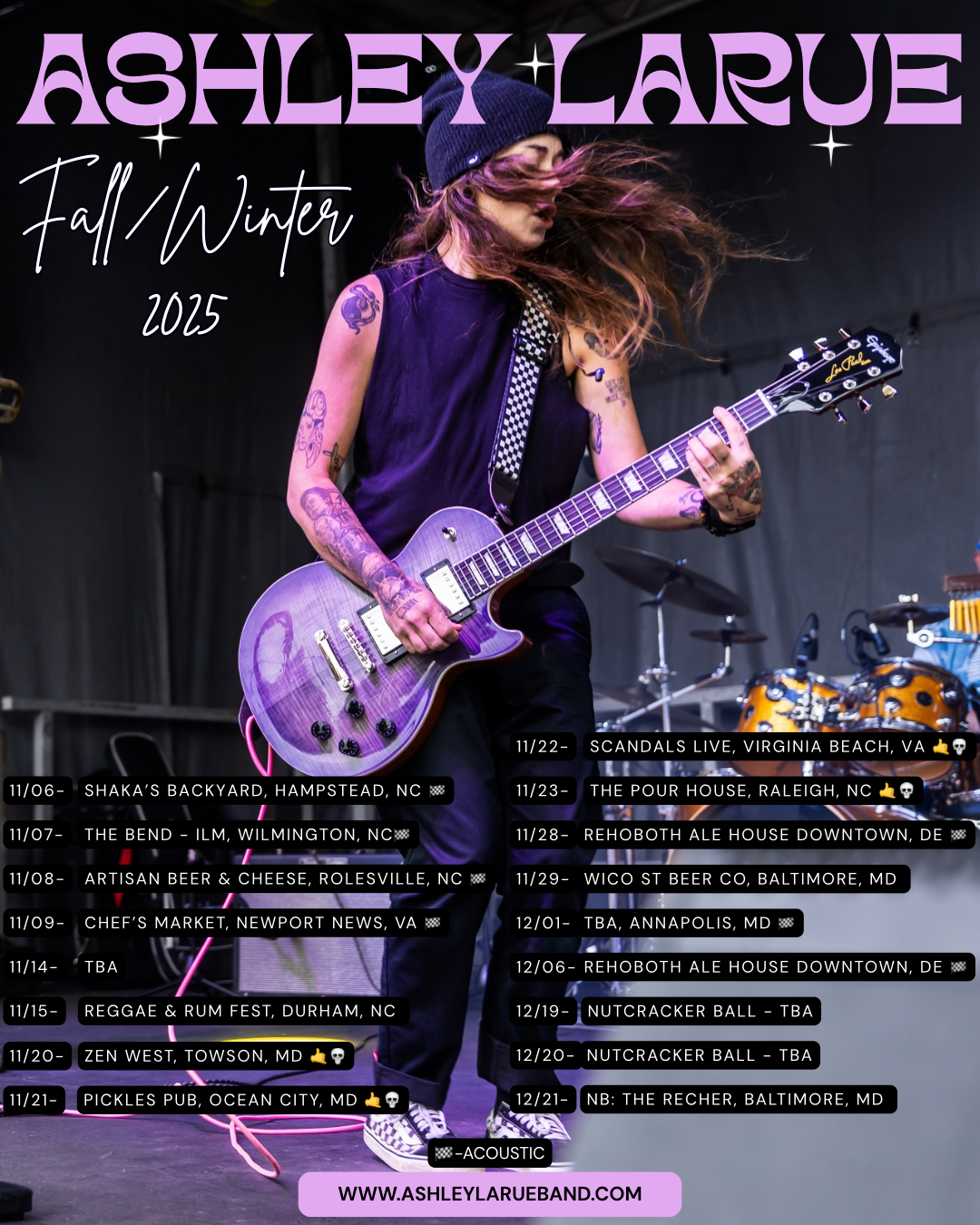 A fine blend of acoustic, reggae, alt rock, and what can only be described as "her sound", Ashley LaRue and her band reach out to the world with messages of positivity, hope, and good vibes as a bonded tribe of musical virtuosos. ALB is currently working on their Debut LP with record producer Eddie Ashworth, at The Oxide Shed in Athens, OH. The LP is set to release October 2025!